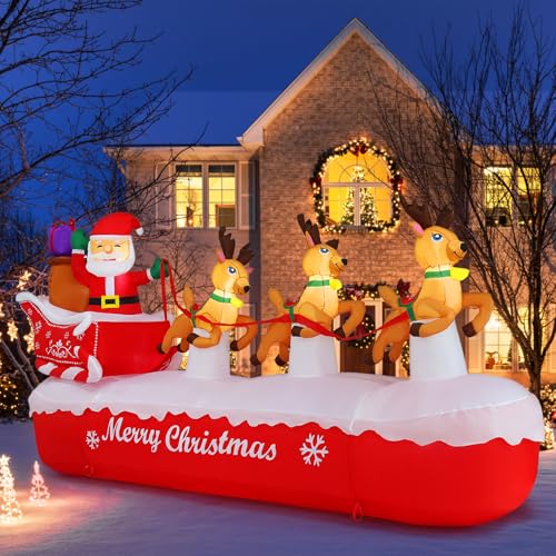 Magic Christmas Decor: Recreate a festive fairytale outdoors or indoors! This 4.5 Pounds inflatable Santa sleigh with Elks shines in yards, gardens, patios, roofs, malls, and family parties. Built-in warm white LEDs cast storybook charm, while the hand-sketched Santa brings delivers tangible magic for unforgettable childhood memories