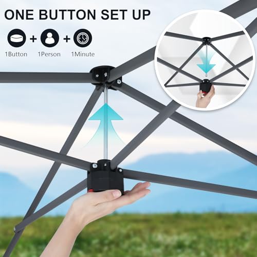 ?EASY SETUP?The COOSHADE canopy tent is designed with fully assembled One-Piece frame in high gauge sturdy metal no tools needed,seamlessly enables set-up in one minute.Super strong double truss one piece frame with full awnings comes completely assembled. And the eaves can be automatically extending when open the pop up gazebo opens without any additional manual assembly.