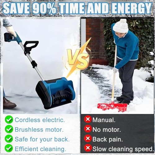 ?Effortless 3-Direction Snow Control?: 2025 New electric cordless snow shovel can tackle any snow pile with precision,simple knob that lets you redirect snow up to 45° left, right, or upward. Effortlessly DIY snow removal and direct snow exactly where you want it, preventing repetitive shovelling and saving you time and energy on icy days.