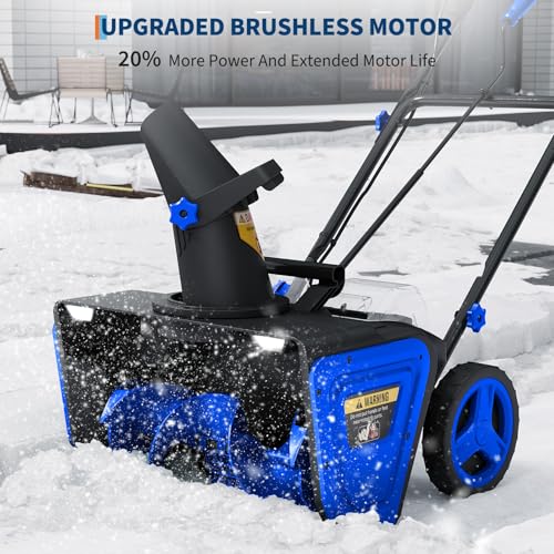 Powerful Cordless Electric Snow Blower with Advanced Brushless Motor: Tackle the toughest winter conditions with ease using our high-performance battery snow blower. Driven by a robust 40V brushless motor, it delivers unwavering power to cut through dense, heavy snow effortlessly. This battery operated snow blower clears a 20-inch path and handles depths up to 10 inches in a single pass, making it a reliable and efficient electric snow blower cordless solution for all-season use.