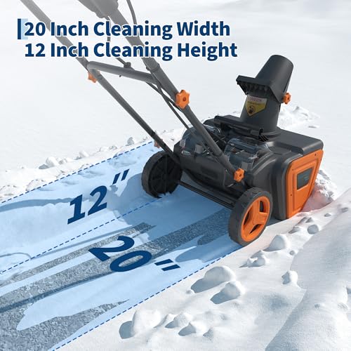 ?High-Efficiency Snow Removal Performance?Equipped with a larger torque, high-performance brushless motor, the electric snow blower effortlessly handles wet, heavy snow. It clears up to 20 inches wide and 12 inches deep in a single pass, effectively reducing repeat passes and saving time and physical effort.