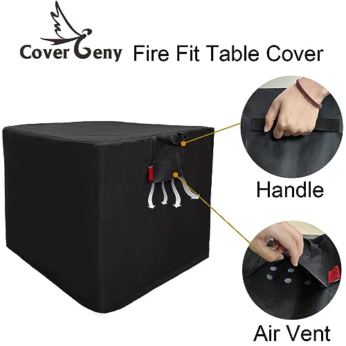 The square fire pit cover fits fire table size up to 27"L x 27"W x 24"H. Also fits fire pits such as 24 x 24 inch, 25 x 25 inch, 26 x 26 inch. Fits for Zeny 26" fire pit, Sunjoy 26" fire pit, Cook Time 26" fire pit, Hykolity 26" fire pit or other fire pits.