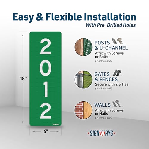 Our 911 address signs for driveway and mailbox have rounded corners and pre-drilled holes for easy installation. Mounting hardware is not included, but screws, bolts, nails, or zip ties can be used.