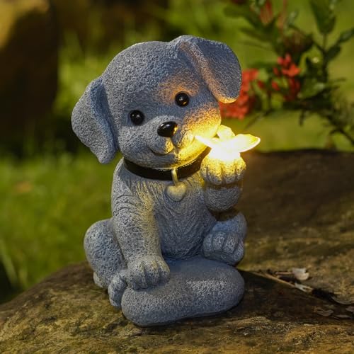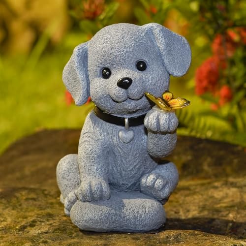 Perfect Outdoor Decoration: Ideal for any garden, patio, lawn, or balcony, this dog statue with a butterfly-shaped solar light symbolizes loyalty and freedom. Standing 8 inches tall, it’s the perfect size to complement your outdoor space and make a statement.