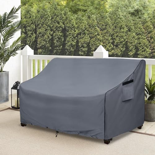 100% Waterproof outdoor sofa cover----Our loveseat cover is made of 600D heavy-duty waterproof Oxford,double needle stitching for seams,which can prevent water and dirt get into,protect your furnitures from UV,rain,dust,leaves,bird droppings and etc,keep furnitures dry and clean.