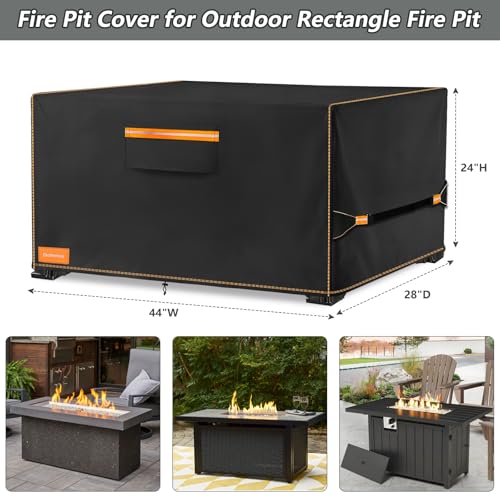 Rectangular fire pit cover:44"L x 28"W x 24"H,fits most outdoor 44 inch rectangular fire pits and tables.Please confirm the size of your firepit before purchase.