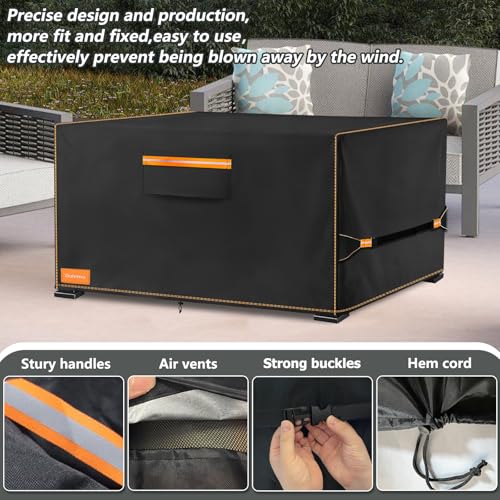 Easy to use & breathable:There has 2 strong handles on the side of the fire pits cover,which make it easy to put on and take off.And big air vent on the fornt of the cover for air circulation,prevent inside condensation