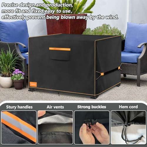 Easy to use & breathable:There has 2 strong handles on the side of the fire pits cover,which make it easy to put on and take off.And big air vent on the fornt of the cover for air circulation,prevent inside condensation