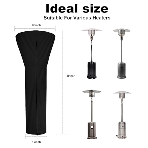 STANDARD SIZE: The standard size of this patio cover is 89"H x33"d x19"w. To ensure the best fit, measure your patio heater carefully before ordering