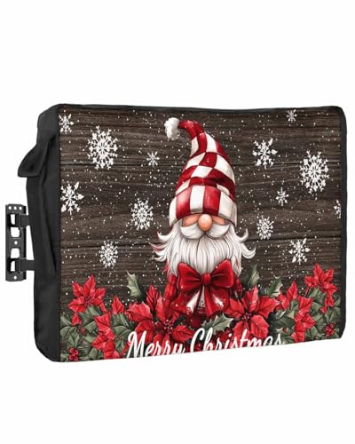 DecorLovee Outdoor TV Cover 80 to 85 Inches Weatherproof & Waterproof, Vintage Gnomes Christmas Outdoor TV Enclosure with Remote Control Pocket, Snowflake Xmas Poinsettia TV Screen Protectors