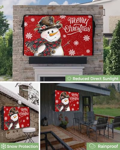 DecorLovee Outdoor TV Cover 80 to 85 Inches Weatherproof & Waterproof, Red Snowman Christmas Outdoor TV Enclosure with Remote Control Pocket, Xmas Snowflake Funny TV Screen Protectors for Outside TV