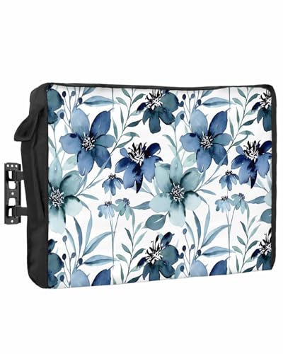DecorLovee Outdoor TV Cover 80 to 85 Inches Weatherproof & Waterproof, Blue Teal Flowers Outdoor TV Enclosure with Remote Control Pocket, Watercolor Pastoral Botanical TV Screen Protectors