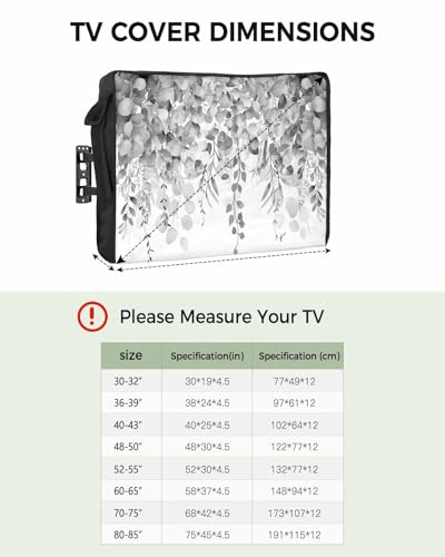 DecorLovee Outdoor TV Cover 80 to 85 Inches Weatherproof & Waterproof, Grey Botanical Outdoor TV Enclosure with Remote Control Pocket, Weeping Eucalyptus Leaves Watercolor TV Screen Protectors