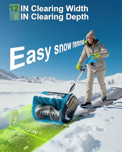 ?Powerful & Efficient 12-Inch Clearing?Effortlessly clear up to 6 inches of dry snow with a powerful motor and twin-blade propeller. This electric snow shovel quickly clears a 12-inch wide path, saving your time and physical strain compared to manual shoveling, and is perfect for quick morning cleanups.(Note: for wet or heavy snow, loosen it with a shovel first and clear in thin layers.)