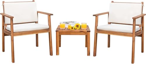 ?Designed for Comfort?The seat and back of this patio set are designed with a 110° angle, which provides better support and comfort to the body than traditional right angle seat. Come with banding rope, cushions can be fixed in the back and will not move around.