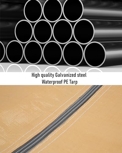 [Built to Last] Robust construction with 10x1.0mm thick reinforced leg poles and 1.2mm thick connectors; 14mil / 180gsm PE tarps ensure strength with a max snow load of 3.1 Psf