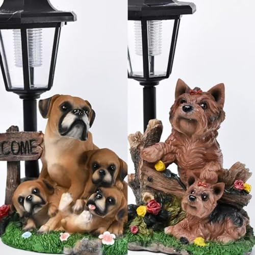 Charming Dog Design: This solar-powered garden statue features a lifelike dog sitting under a street lamp, creating a heartwarming and whimsical scene. The meticulous craftsmanship and attention to detail make it a captivating piece for any outdoor space.