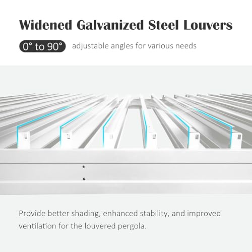 Premium Aluminum Construction - This metal pergola is made of powder-coated aluminum frame and louvered roof of galvanized steel. High-quality material made our pergola rust-resistant, durable, scratch-resistant, slip-resistant, and fade-resistant.