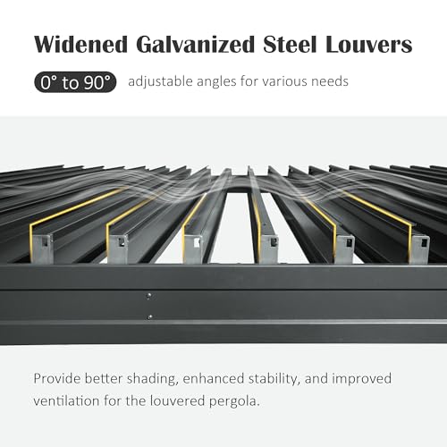 Premium Aluminum Construction - This metal pergola is made of powder-coated aluminum frame and louvered roof of galvanized steel. High-quality material made our pergola rust-resistant, durable, scratch-resistant, slip-resistant, and fade-resistant.