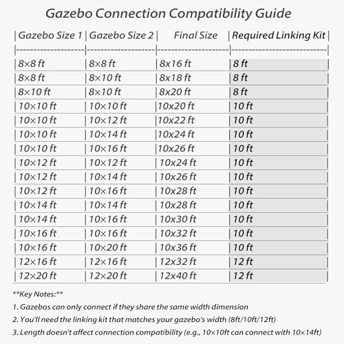 Seamless Gazebo Expansion - You can use our specialized connector to easily connect two or more same-width gazebos, creating a larger shaded area. Endless Combinations, Endless Shade.