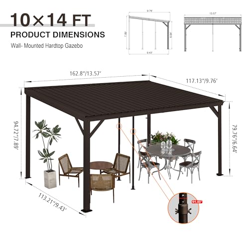 Spacious & Stable - Generous 162.7''x113.2'' coverage (94.7"H) creates a sturdy shaded zone for furniture, with wall-mounted design saving space versus freestanding units.