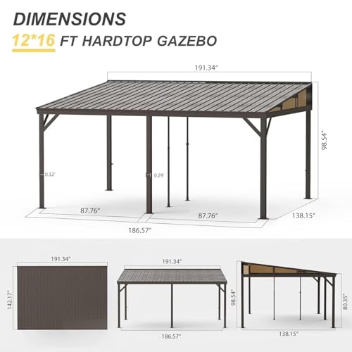 Extend Space with Wall Mounted Gazebo - The 12x16 lean to hardtop gazebo extends your private space to a large extent. Install the domi gazebo at the entrance of your home, you can enjoy your afternoon tea time leisurely. The pc panel on the side can protect you from small rain and partially block the sunlight