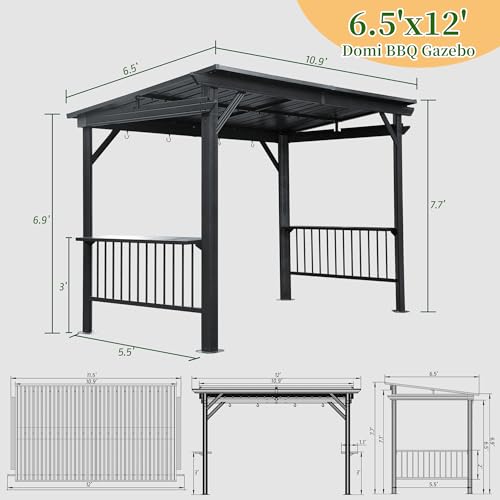 Spacious BBQ Gazebo- The Domi 6.5'x12' Grill Gazebo offers an expansive area that fits standard-sized BBQ equipment perfectly. This Domi outdoor gazebo transforms your garden, patio, deck, or backyard into the ultimate barbecue spot, providing both comfort and style for outdoor gatherings.