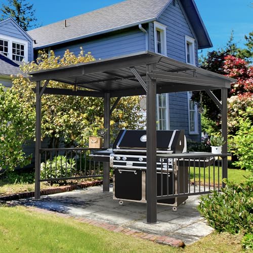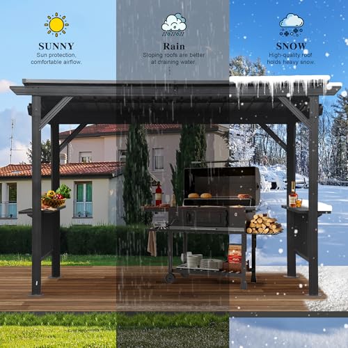 Sloping Hard Top Design- Featuring powder-coated galvanized steel roof, this hardtop gazebo resists UV rays and corrosion, ensuring long-lasting durability. The sloped design allows rainwater to run off efficiently and enhances ventilation for wind and smoke flow, keeping your grilling space protected and functional in various weather conditions.