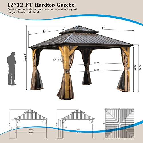 Versatile Usage - This 12x12 wooden gazebo measures 12' L X 12' W x 10' H and provides 144 square feet.It's a perfect choice for outdoor barbecue,party or daily relaxation with your family and friends.Create your dream backyard oasis with all season gazebo!