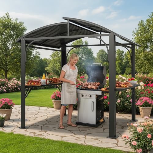 Durable & Stable Frame- The sturdy steel frame with a rust-resistant coating ensures long-lasting durability and stability, making the BBQ gazebo capable of withstanding various weather conditions and preventing rust and corrosion.