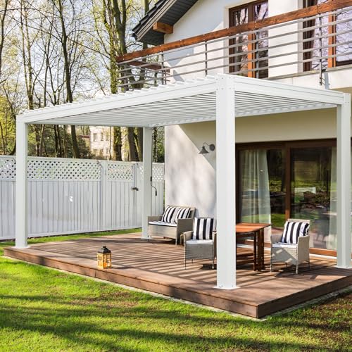 Multifunctional Use- The Domi 10x13 pergola offers ample space for sofa sets, patio furniture, a hot tub, dining sets, or even use as a carport. Unlock unlimited potential with this versatile louvered pergola, perfect for creating a cozy lounge, hosting garden parties, or enjoying shade from the sun.