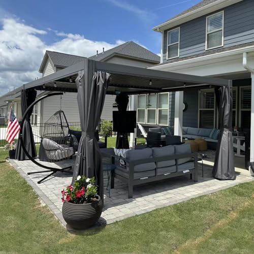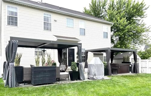 Curtains&Netting Included - This domi pergola louvered designed with double-track system and double-sided zipper for quick sliding. The netting maintain good ventilation and open view and the privacy curtains provide a safe and comfortable space for your family and children,it can also keeps the space warm.