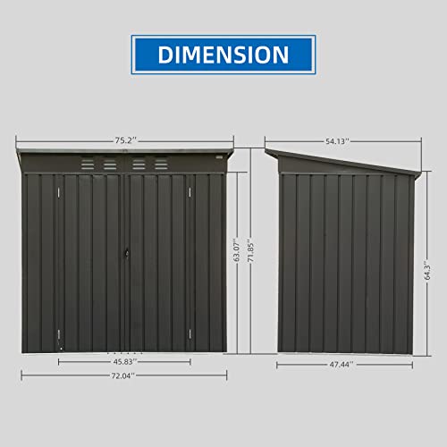 ????? High-quality Material - The outdoor metal shed uses thicker galvanized steel and a durable framework to ensure safe and all-weather use. Overlapped wall panels offer waterproof and moisture-resistant properties, perfect for all weather conditions.