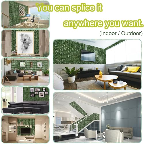 Easy installation: the size of the artificial ivy grass wall panels is 60"×140", which can be cut into any shape and size you want, and each panel is equipped with interlocking connectors for easy and simple connection. You can disassemble it into 21 small pieces of 20×20 inches to form the size you want. Install it in your room or fence with adhesive tape or our attached cable ties.