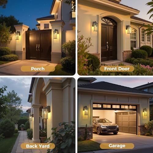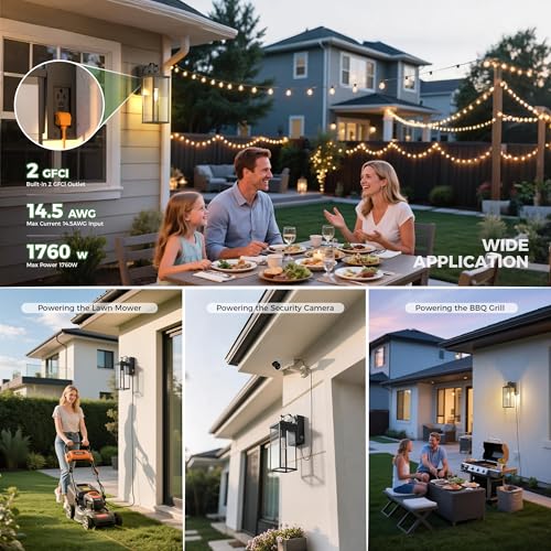 Automatic On/Off & Convenient Power: Equipped with a smart dusk to dawn sensor, these outdoor lights for house and porch lights outdoor automatically turn on at dusk and off at dawn, providing hassle-free lighting while saving energy. Plus, built-in dual GFCI outlets add extra convenience for outdoor power needs.