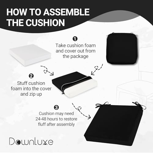 Supportive High-Density Foam: Our patio chair cushions are filled with 25D foam, providing fully support and comfortable feeling, perfect for outdoor use. After unpacking, please wait 24-48 hours for the outdoor cushions to regain their fluffiness