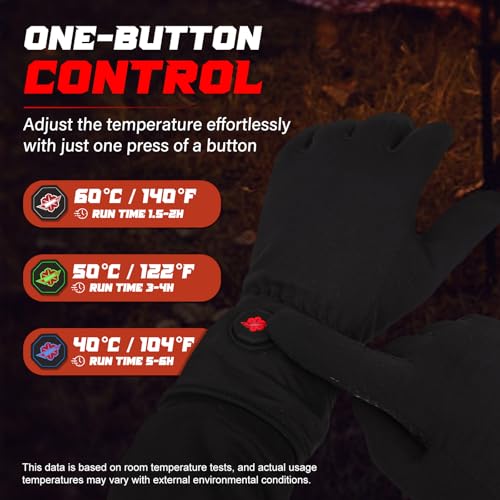 Soft and Flexible Fit: These heated winter gloves use stretch fabric for excellent dexterity and precision, making them great as a daily winter glove when you need to perform precision tasks. Whether you're typing away on your computer, scrolling through your phone, or curling up with a good book, these gloves are perfect for keeping the chill at bay.