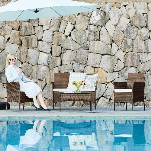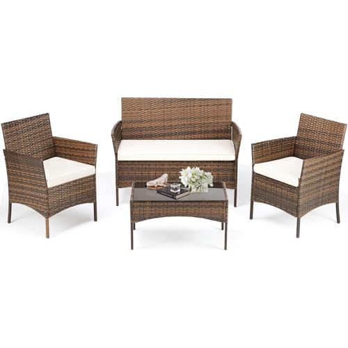 ?High Quality Rattan?DUMOS Patio Furniture Set 4 Pieces are made of rattan wickers that make this outdoor furniture looks fashion and modern. Our all-weather rattan chairs adopts exquisite craftsmanship which is comfortable, breathable, waterproof. You can rest assured to use it outdoors.