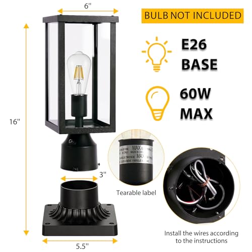 ?E26 Base Bulb?: Outdoor light post is suitable for all E26 base bulbs, such as LED, Incandescent, Halogen or CFL. Outdoor lamps rated voltage 110-120V, Max 60 Watt.(Bulb not Included).