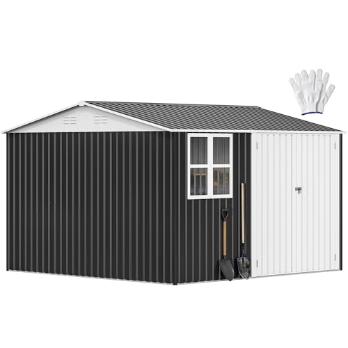 Ample Storage Capacity: Our 10'x10' outdoor storage shed measures 113.78''L x 113.78''W x 80.31''H, and provides a capacity of 546 Cuft; It offers a secure and weather-resistant shelter for garden tools, lawn equipment, bicycles, and outdoor supplies; Can also serve as a pet haven or a plant greenhouse