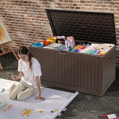Versatile and Practical: More than just storage, this deck box doubles as an extra table or bench, seating up to six people with a weight capacity of 1000 lbs; It seamlessly blends into any yard or patio with spacious space for cushions, tools, supplies