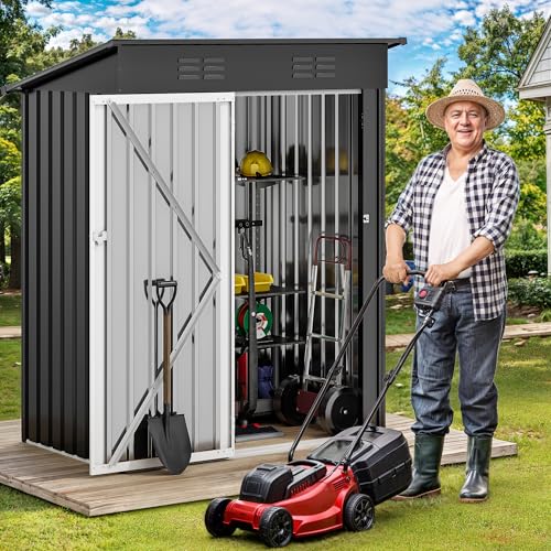 Spacious Storage: Our 5x3ft outdoor storage shed features an external dimensions of 54.7"L x 29.5"W x 71.5"H, and door sized 27.8"L x 62.6"W; Providing a safe and weatherproof area for storing items such as snow blowers, umbrellas, bicycles, skateboards, trash bins, and gardening tools