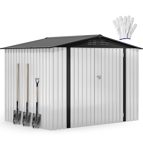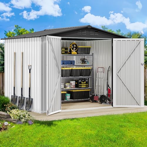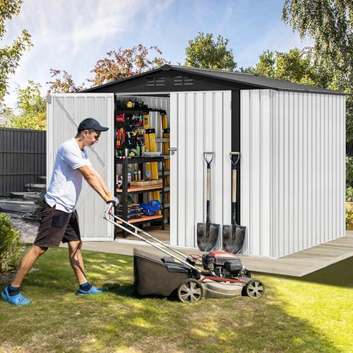 SECURE & ACCESSIBLE: Designed with security in mind, the garden shed features lockable doors; This allows you to use your preferred locks to guard against theft and unauthorized access. The double sliding doors enhance accessibility, making it easy to move items in and out
