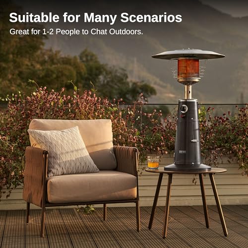 Easy to Replace Propane Tank: With exclusive custom tapered cylinder housing and open door hasp design, the mini patio heater is easy cylinder replacement. The mini patio heater is standardly adapted to 1.02lb propane tank (not included).
