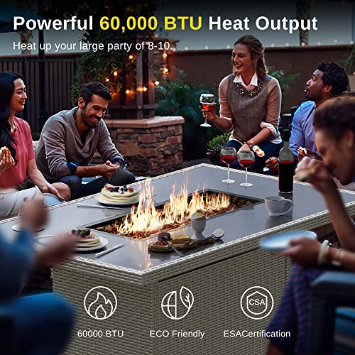 60,000 BTU HEAT OUTPUT and CSA-CERTIFIED SAFETY- East Oak Gas Fire Pit Table provides ample warmth for your gatherings (8-10 people). Use propane fuel to provide green burning, so you don't have to suffer from ash and smog