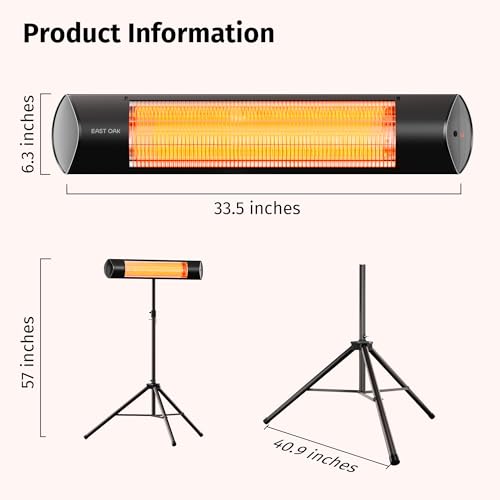 WIDER HEATING RANGE: A high-quality tripod bracket allows height and angle adjustment to focus the heating in just the right area. This electric outdoor heater has a wide 120? heating range will keep the whole family warm. Heating Coverage: 65-130 sq. ft.
