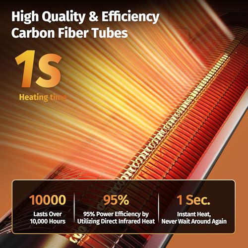 1S RAPID HEATING: The outdoor patio heater delivers incredibly high efficiency and long service life using best-in-class carbon fiber heating tubes. With 1-second instant-on heating and 95% thermal efficiency, you'll enjoy state-of-the-art outdoor comfort.
