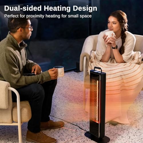 Double-Sided Design: Our electric heater features an exclusive double-sided design distributing the heat evenly, you can feel warm and cozy nearby, particularly suitable for use in a face-to-face talking?Suitable for 2 people?
