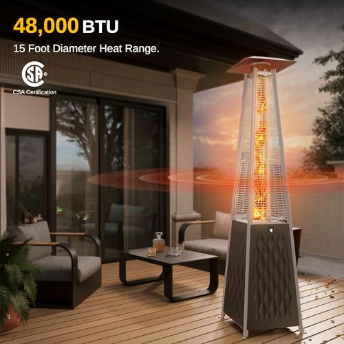 Product 1 - ????????,???????????? ???????????? ???????????????????????????????? ???????????????? : The outdoor heater of patio measures 48,000 BTU to spread heat up to an 15-foot diameter from its central heating position and it is powerful to heat rapidly in 5 minutes. With CSA certification, Ideal for outdoor and commercial use, it can be placed in Outdoor balcony, garden, swimming pool, etc.