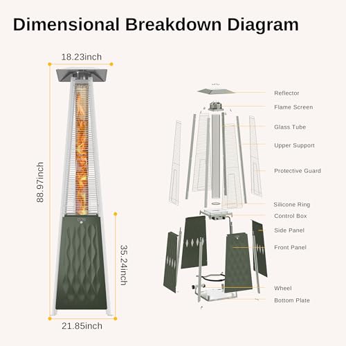 ???????????????? ????????????????????????????-???????????????????????????? ???????????????????????????????? : The exterior of the patio heater is made of high-quality aluminum, and the powder grade coating is not easy to rust. Durable integrated quartz glass tube, heat resistance is enough to use for a long time, 4.7inch thick design to make the flame effect more spectacular, so that you can enjoy the leisure time.